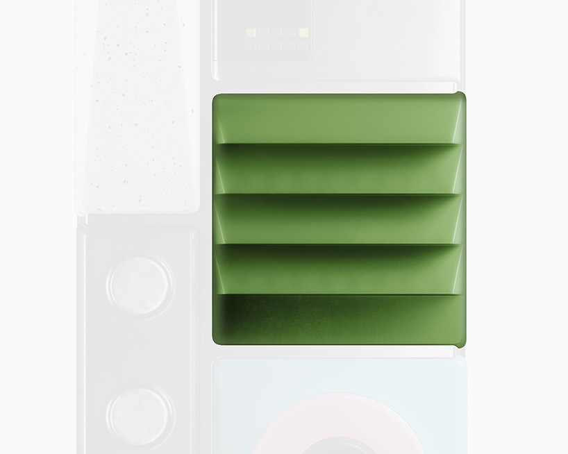 the extruding attachment has been designed to collect and analyze air quality samples. ‘air quality affects our comfort, health and other external parts of our environment that we care about,’ explains lapka. ‘now you’ll know when and where should you open a window, where to place your yoga mat, and even why you’re dreaming a certain way.’ the device also detects volatile organic compounds, carbon monoxide, fine particles in the air, temperature and humidity.